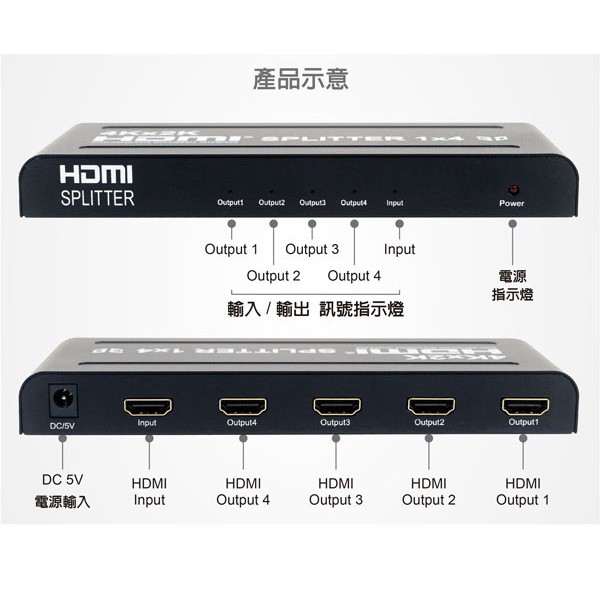 伽利略 HDMI 1.4b 4K2K影音分配器 1進4出 (HDS104A) 4k2k 30Hz 同步