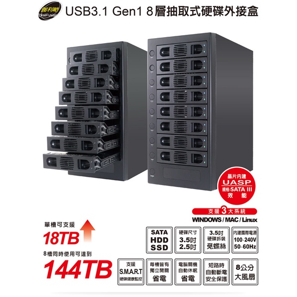 Digifusion伽利略 USB3.1 Gen1 8層抽取式硬碟外接盒 35D-U38