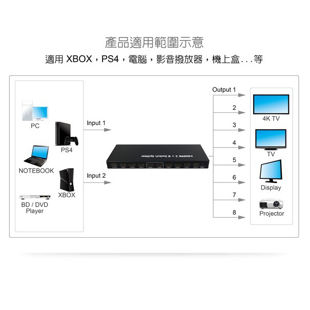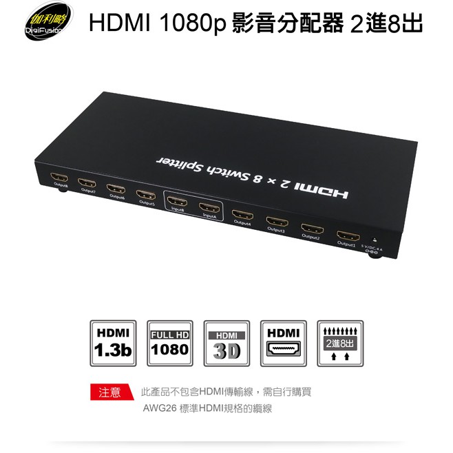 伽利略 HDMI 4K2K@30hz 影音分配器 2進8出 HDS208A