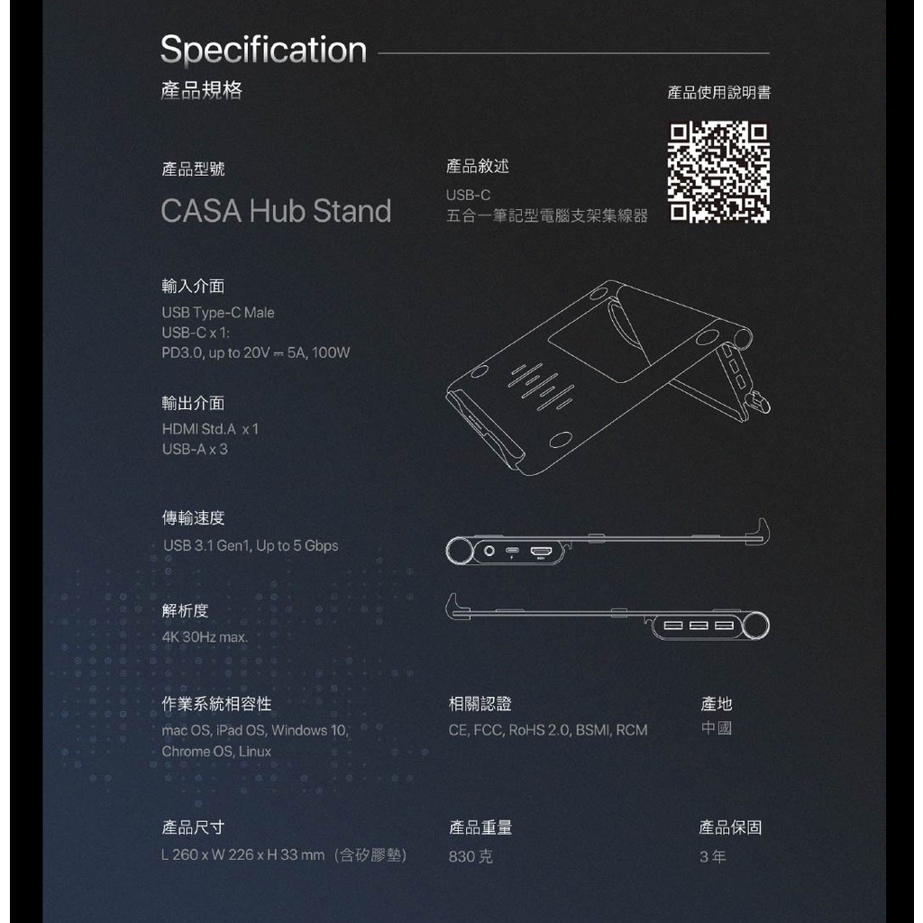 ADAM 亞果元素 CASA Hub Stand USB-C 五合一筆記型電腦支架集線器