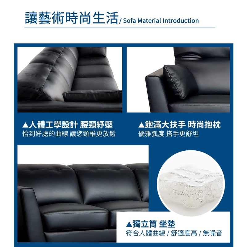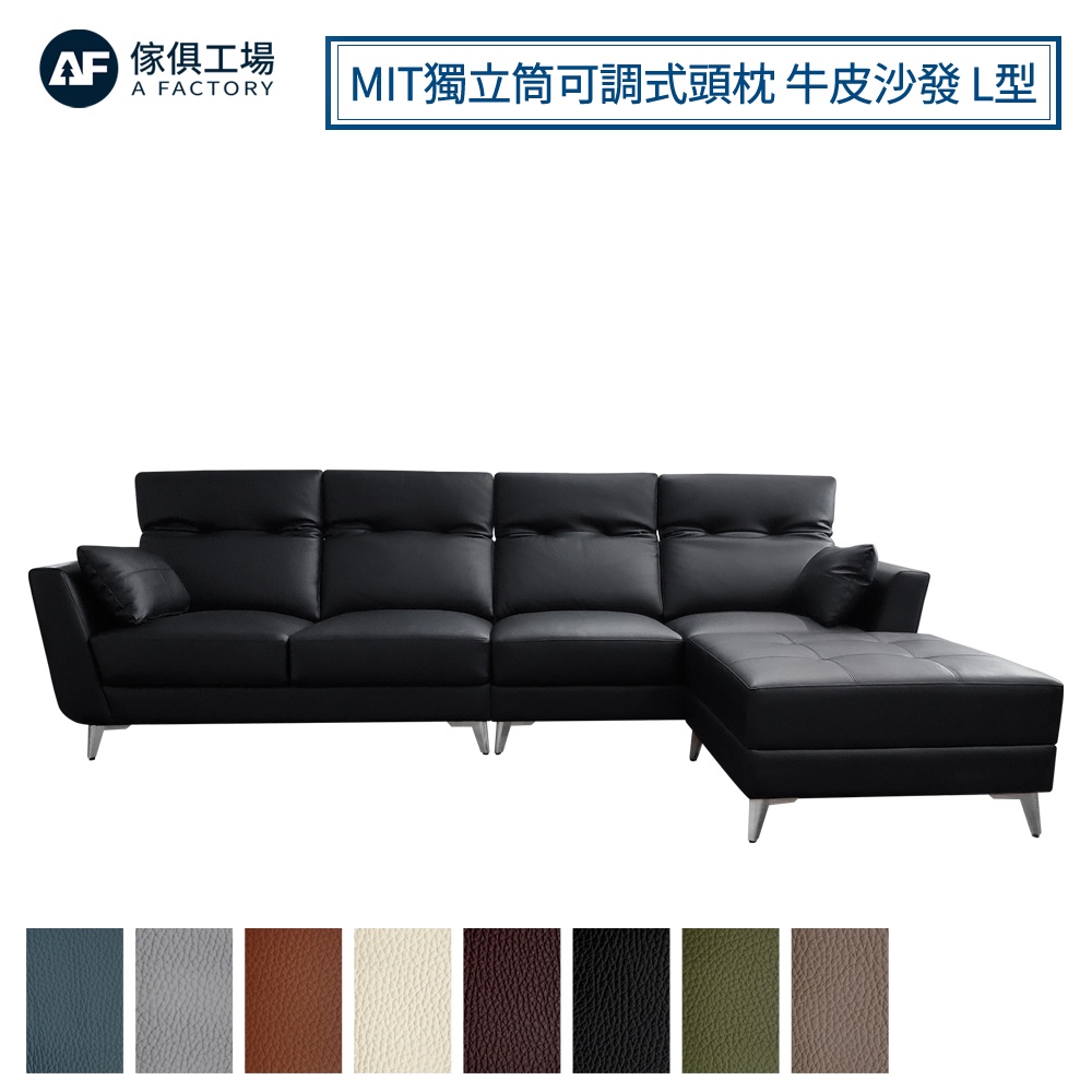 傢俱工場-佳仕達 MIT獨立筒可調式頭枕 牛皮沙發 L型