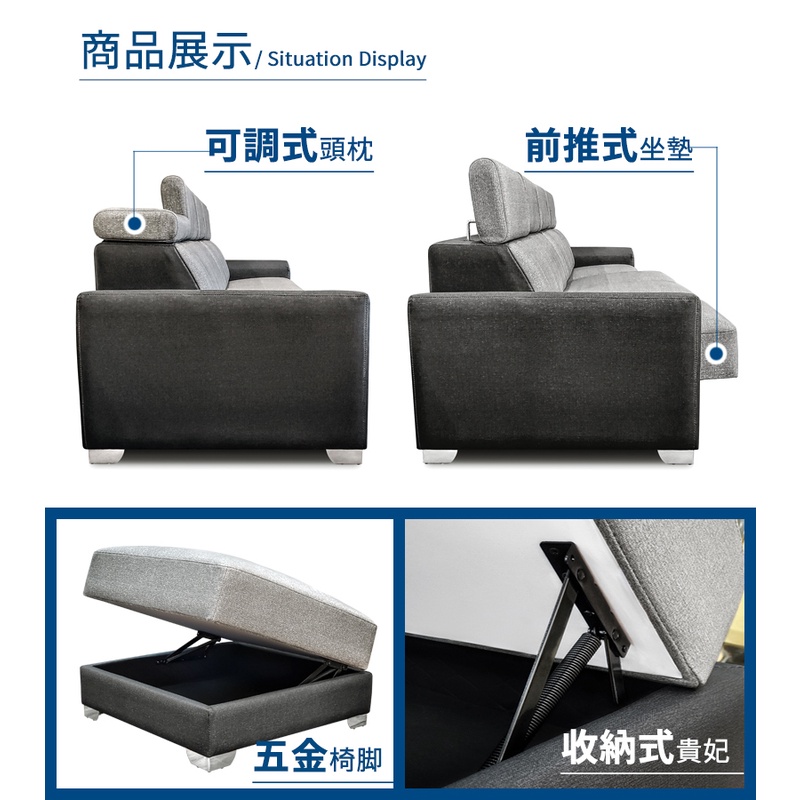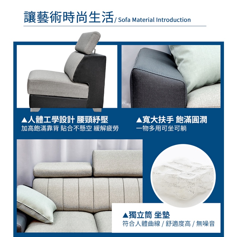 傢俱工場-歐克丹滑墊可調頭枕 獨立筒貓抓皮沙發 L型/4人+腳椅 (贈抱枕*2)