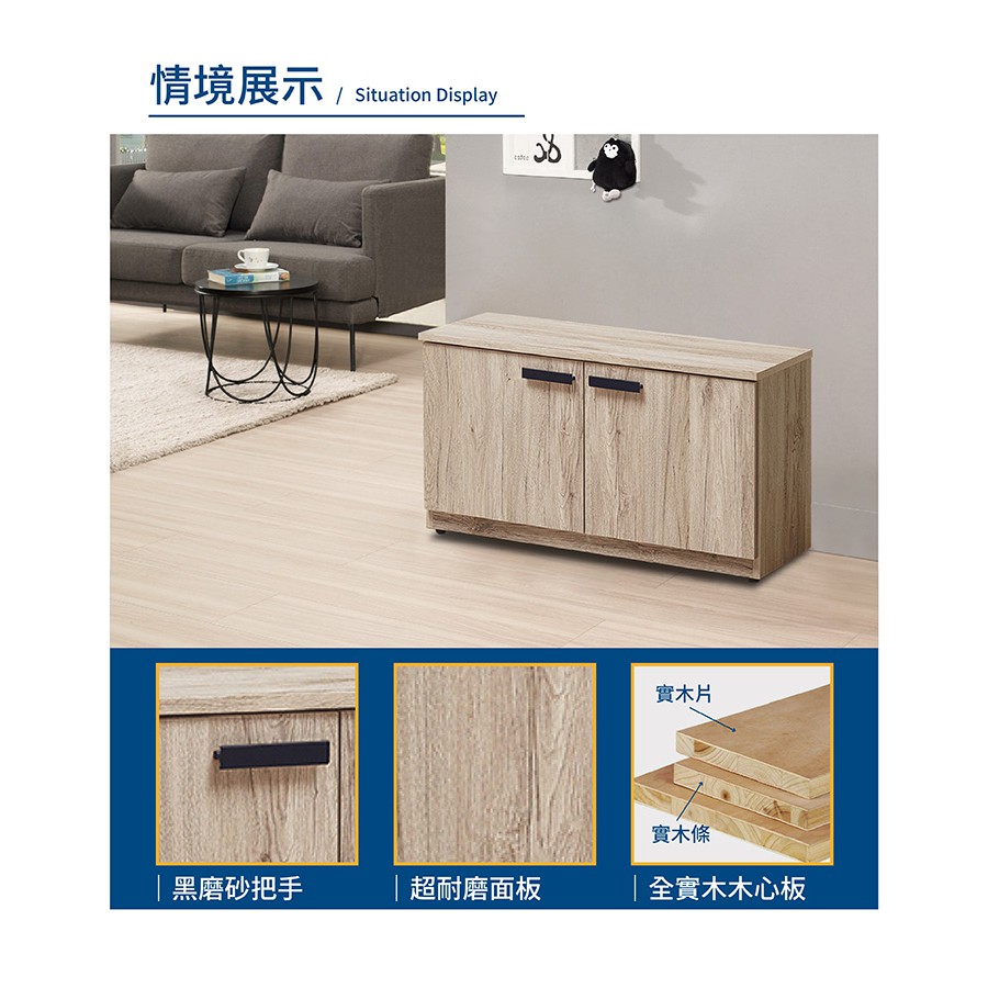 傢俱工場-莫托斯 橡木3尺座鞋櫃