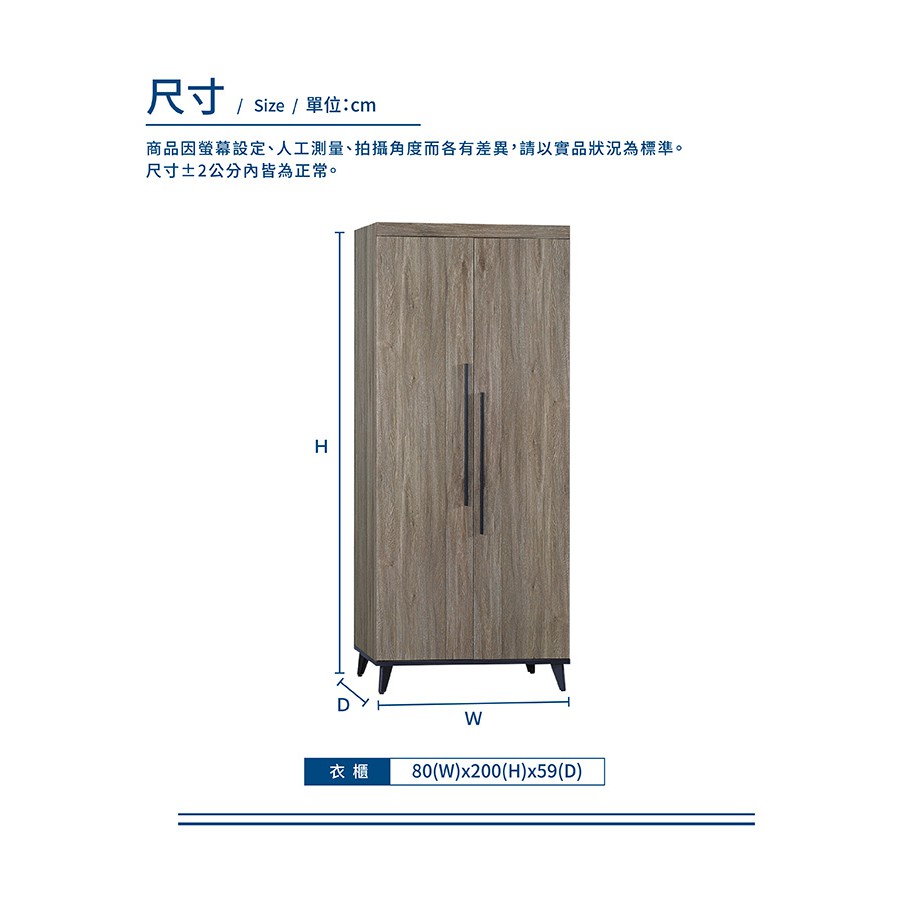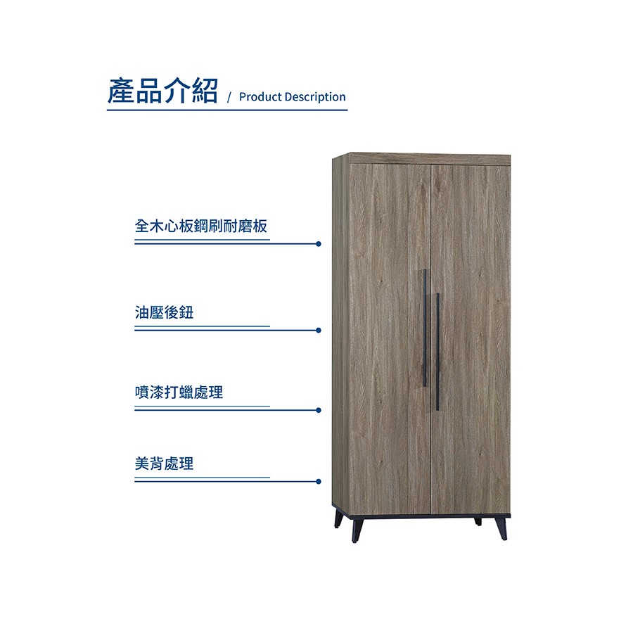 傢俱工場-芮茲 灰橡木2.7尺衣櫃 雙吊