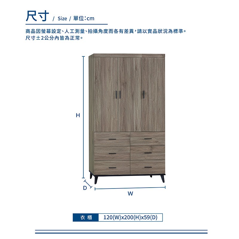 傢俱工場-芮茲 4x7尺3門6抽衣櫃
