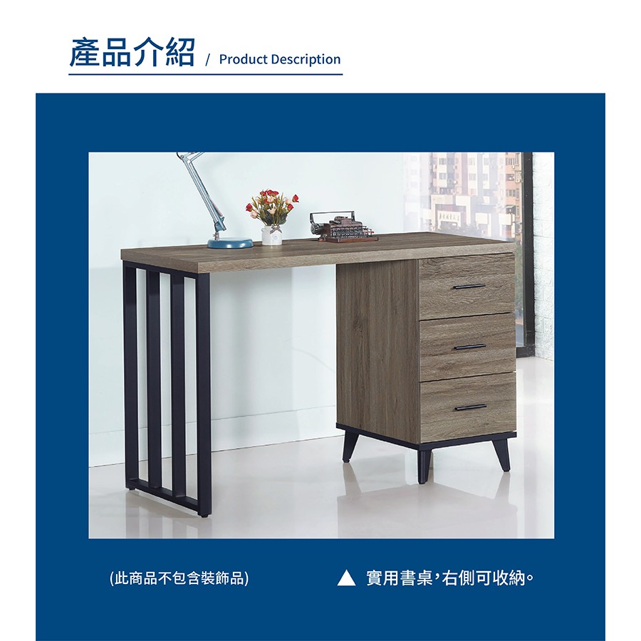 傢俱工場-芮茲 灰橡木4尺組合書桌