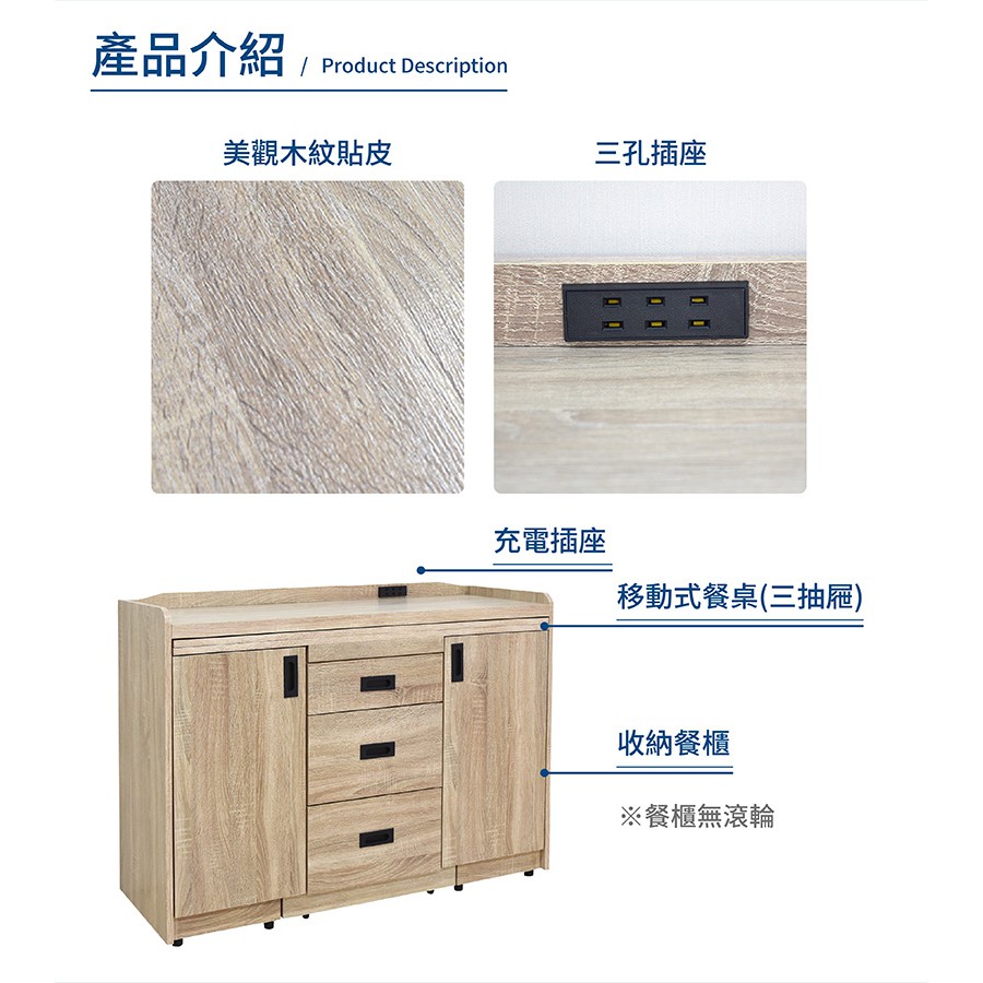 傢俱工場-伯爵 6尺機能型三件式餐桌櫃/電器櫃(附插座)