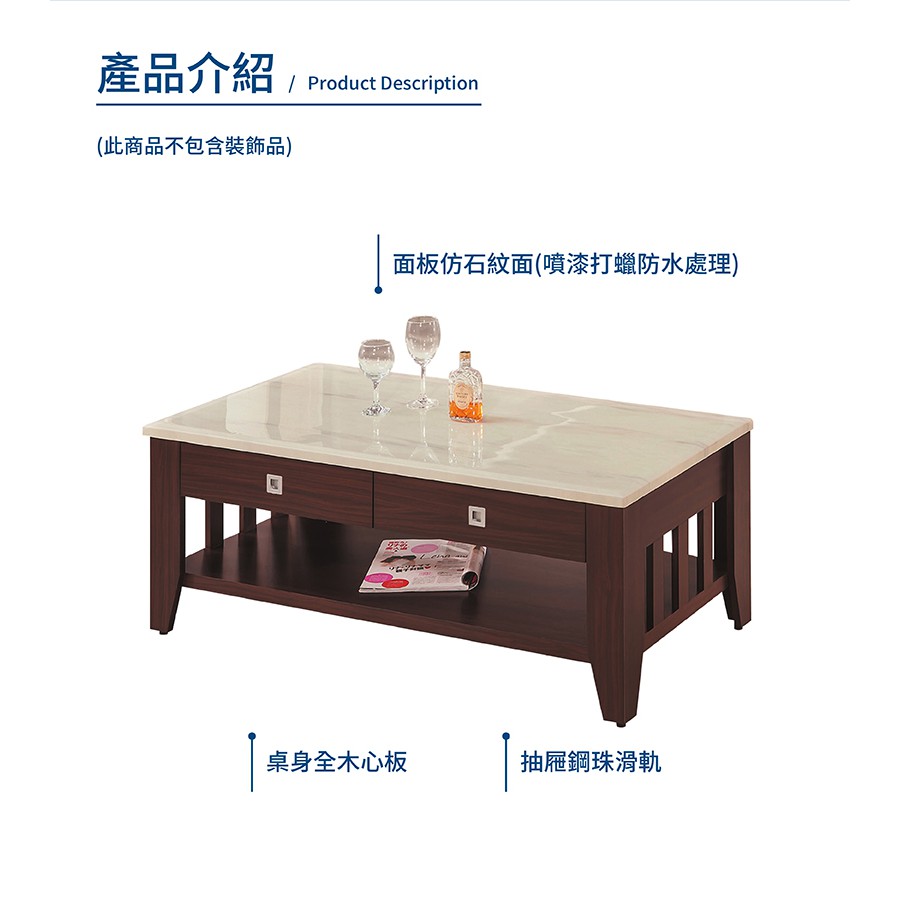 傢俱工場-胡桃 仿石面耐磨4尺三線大茶几