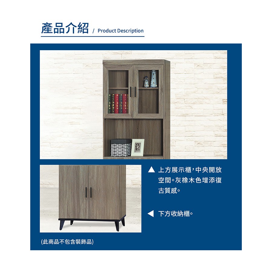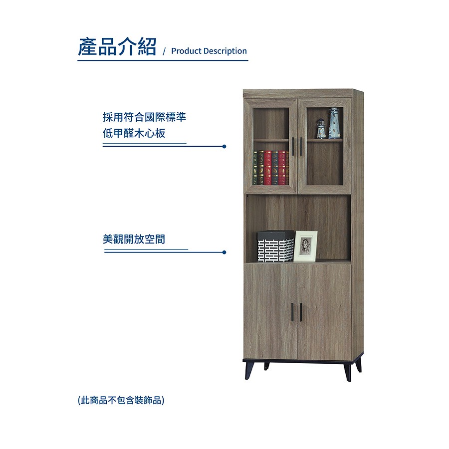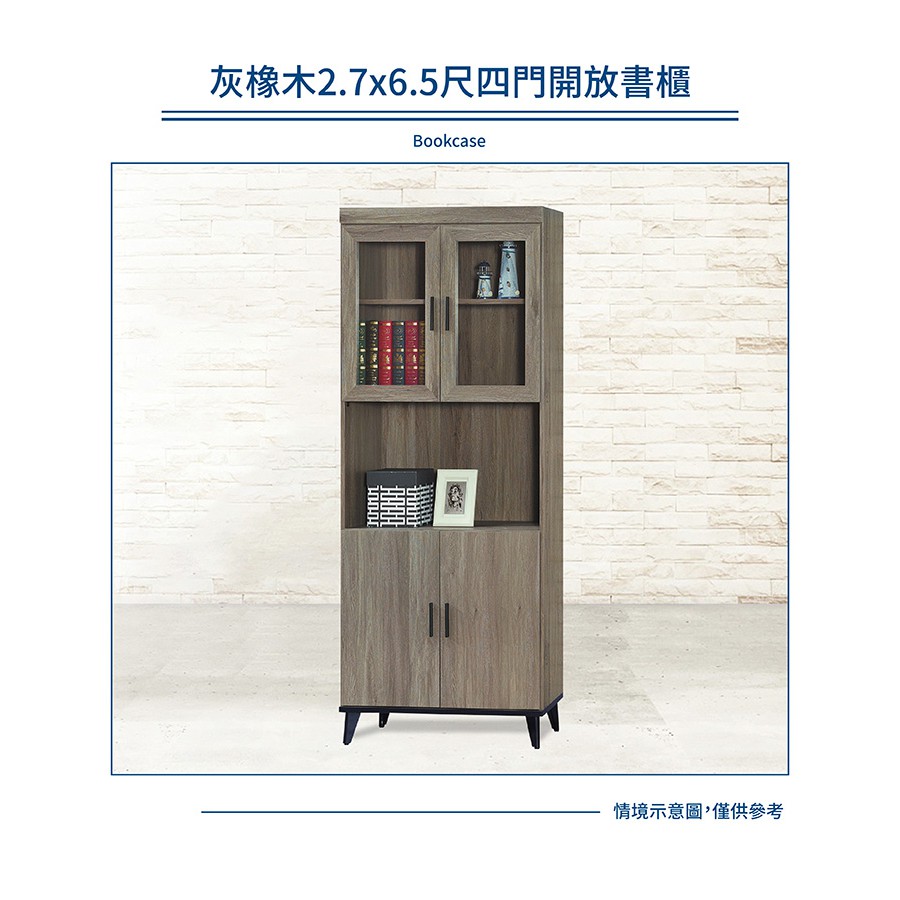 傢俱工場-芮茲 灰橡木2.7x6.5尺四門開放書櫃