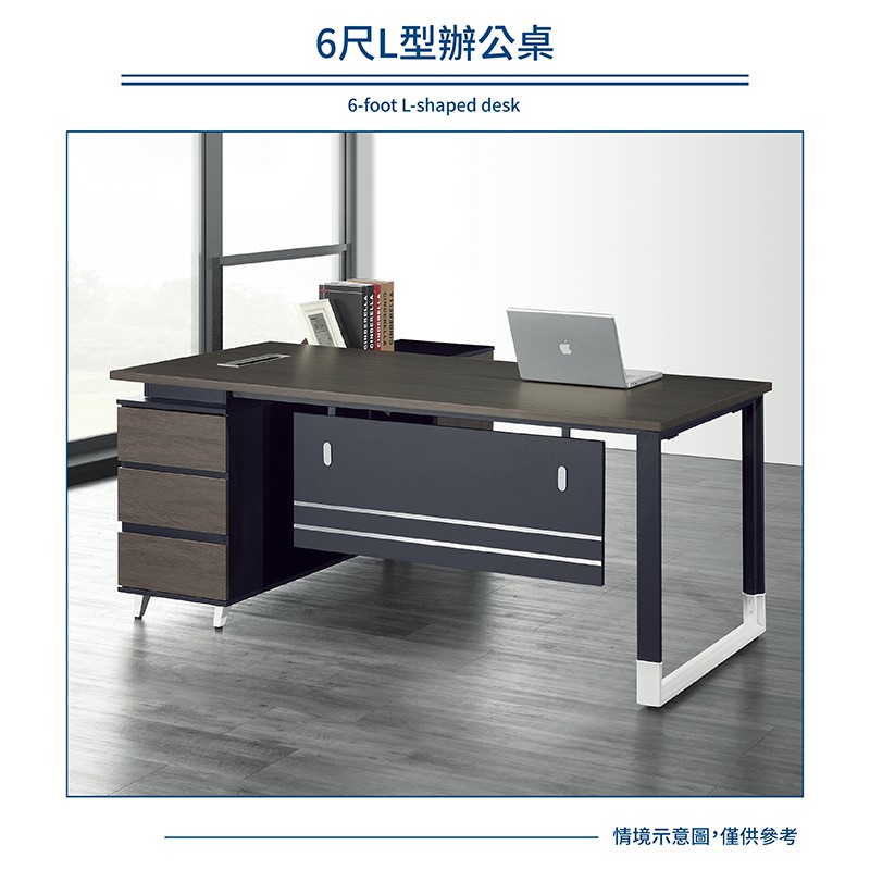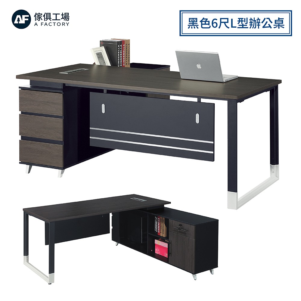 傢俱工場-伯格 黑色 6尺L型辦公桌