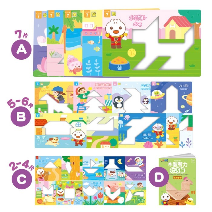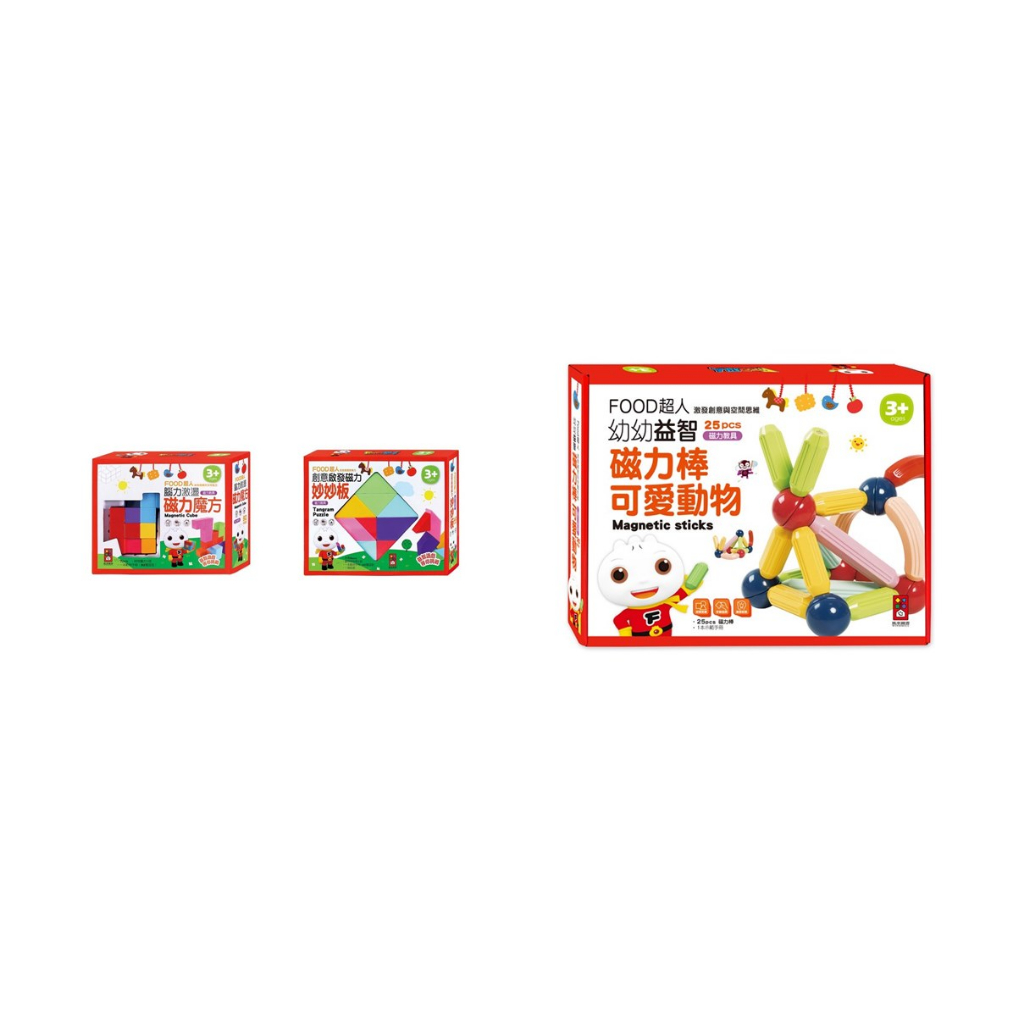 【風車】木製智力七巧板 幼幼益智磁力棒 可愛動物 腦力激盪磁力魔方 創意啟發磁力妙妙板 FOOD超人
