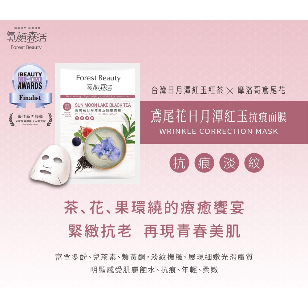 【氧顏森活】鳶尾花日月潭紅玉抗痕面膜 單片|茶多酚 抗痕