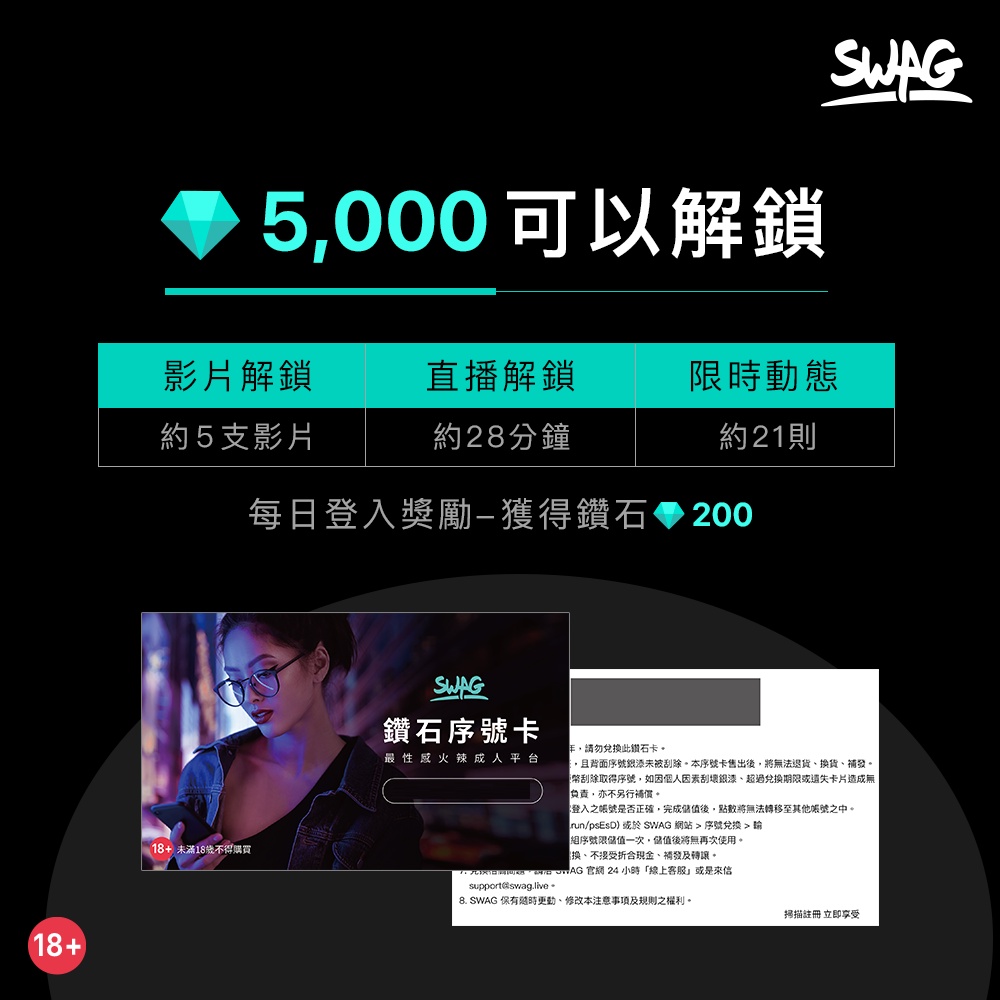 SWAG 點數 實體鑽石序號卡 1399鑽 原廠授權販售