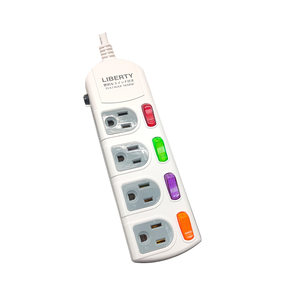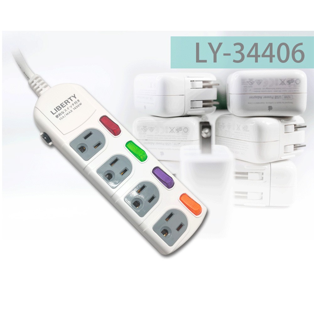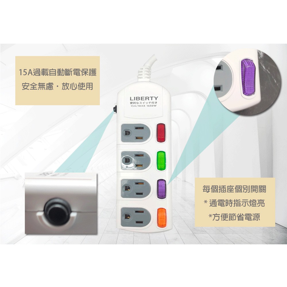 LIBERTY 利百代 宿舍好物 過載斷電4開4插3P扁易拔延長線1.8 LY-34406 延長線 獨立開關 台灣製