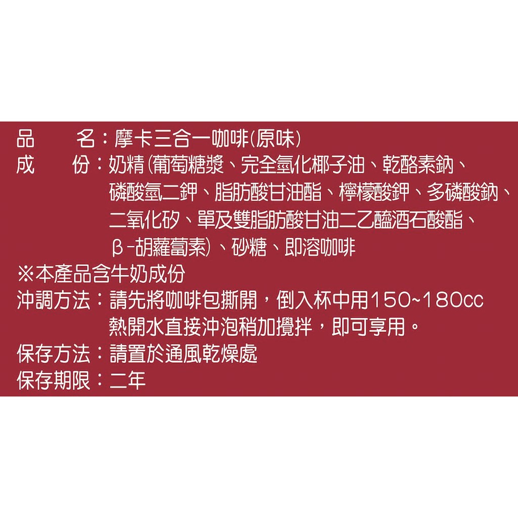 [摩卡咖啡 MOCCA] 原味三合一咖啡(16公克/20包)
