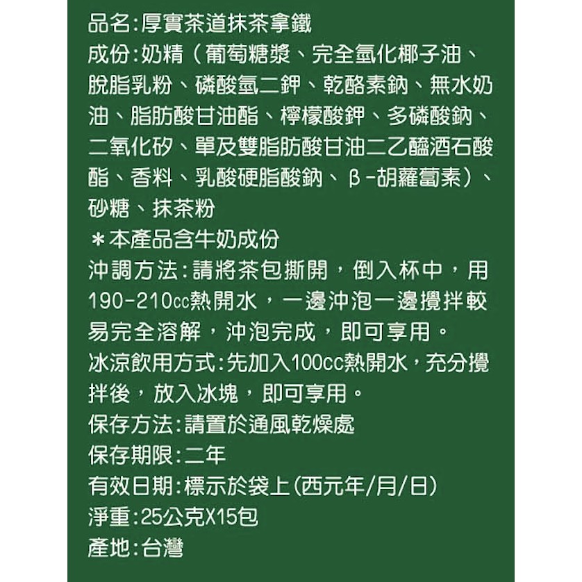 [厚實茶道] 抹茶拿鐵(25g/15入)