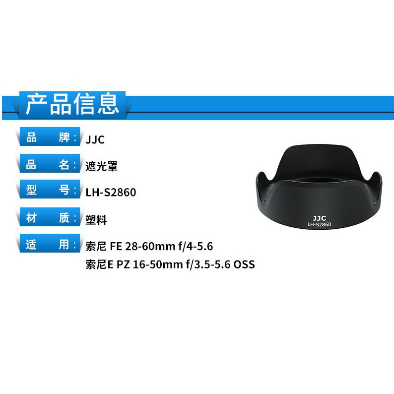 JJC 遮光罩Sony FE 28-60mm f/4-5.6/E PZ 16-50mm f/3.5-5.6 OSS 用