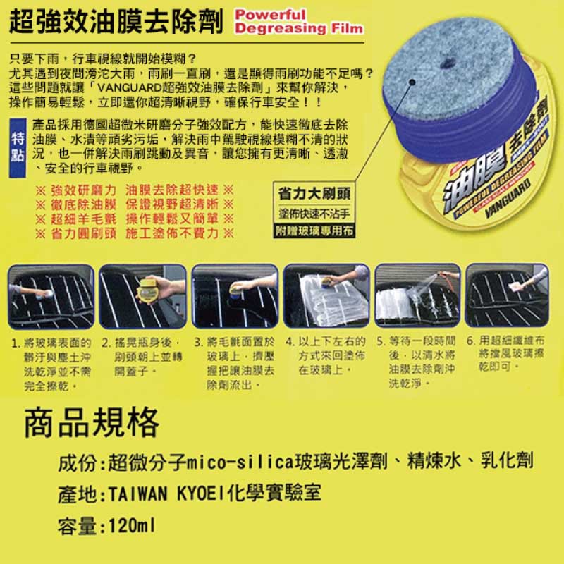 鐵甲武士 VANGUARD 超強效油膜去除劑 RH-5031 除垢 超清晰 玻璃清潔劑