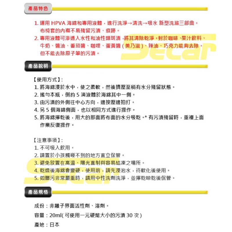 日本 SOFT 99 布面去污劑 纖維布坐席用 強力斑漬祛除套裝 內裝清潔
