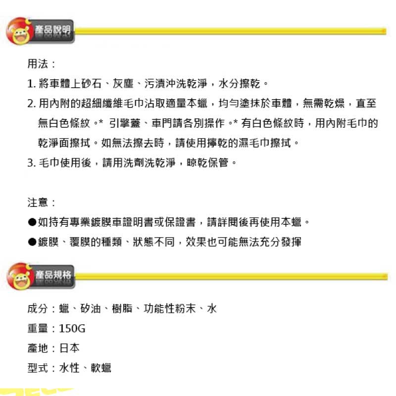 日本 SOFT 99 汽車鍍膜車蠟 (消除細紋型)