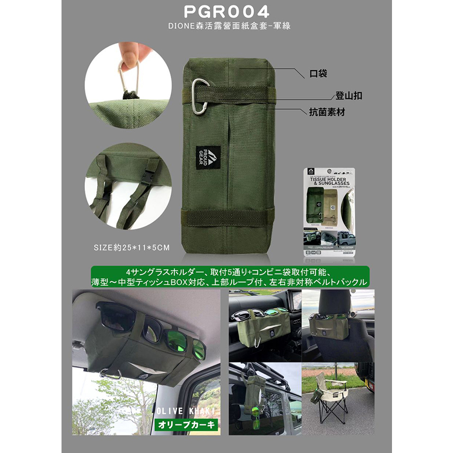 DIONE森活露營面紙盒套-軍綠 卡其色 戰術掛帶設計 特殊抗菌材質