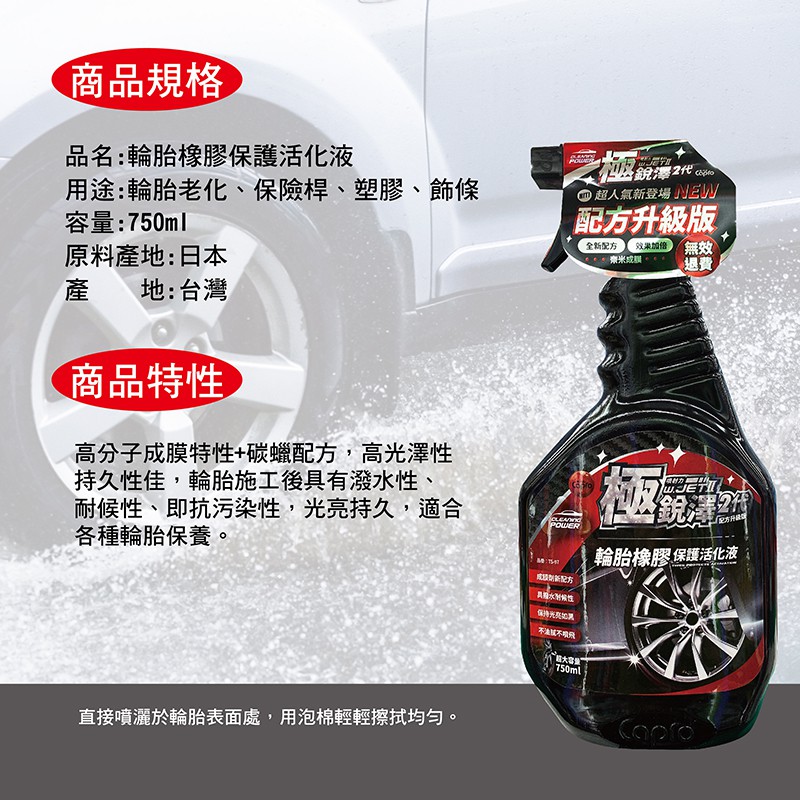 Capro 極銳澤2代配方升級版-輪胎橡膠保護活化液 TS-97 抗污染 高光澤 750ml