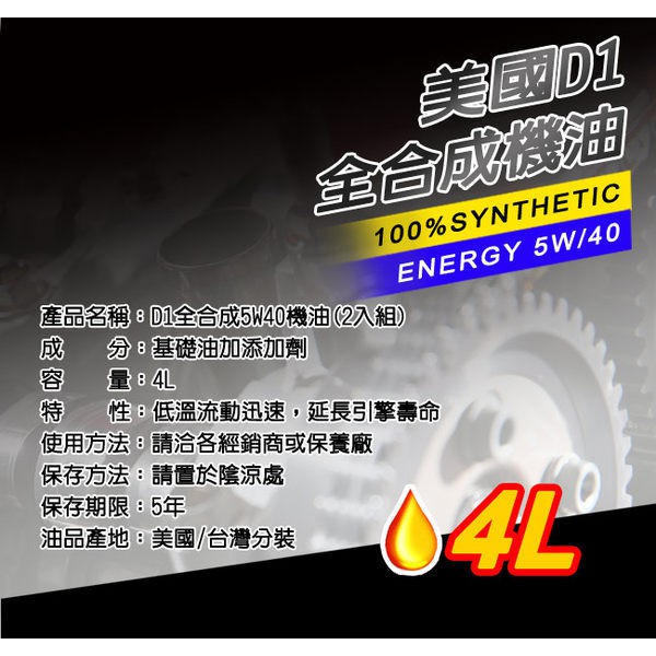 美國D1 SN等級 5W/40全合成機油 2L (2入組)