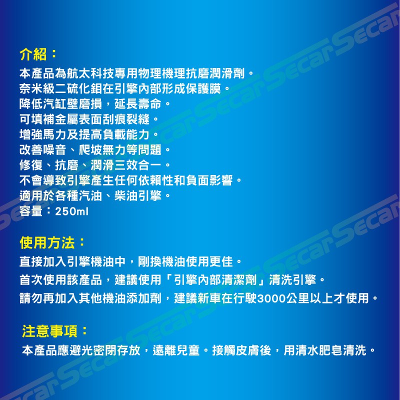 SPANJAARD 史班哲 鉬元素 汽柴油引擎修護精 二硫化鉬油精 抗磨損