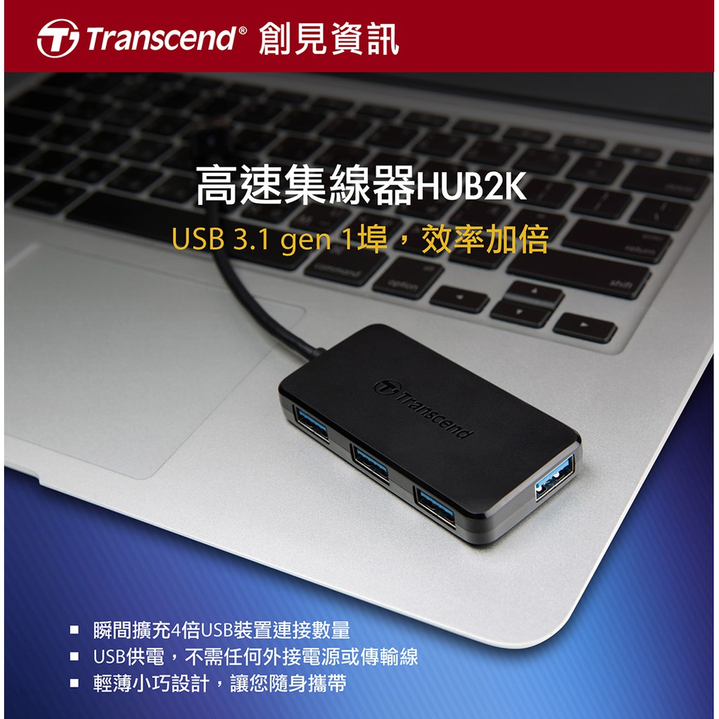Transcend 創見 TS-HUB2K 4埠USB3.1 HUB 4埠集線器 黑色