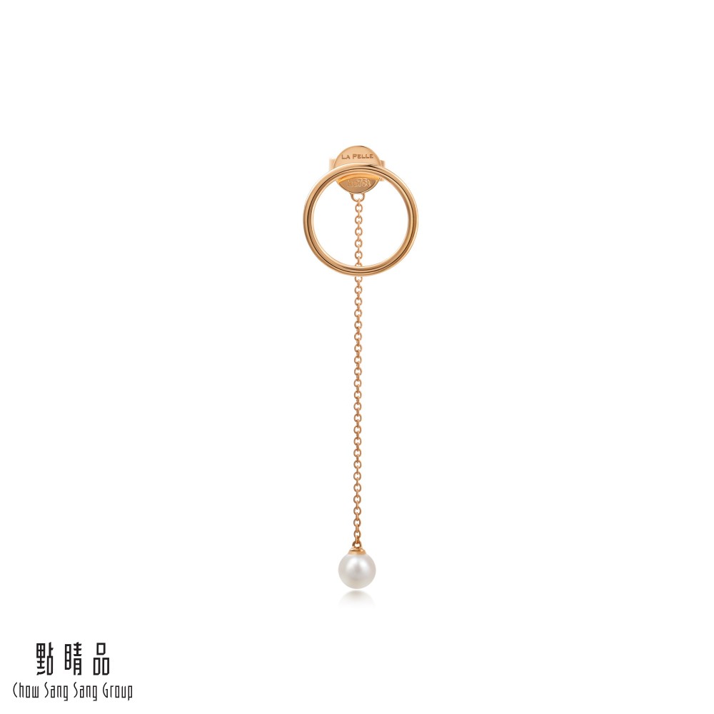 點睛品 La Pelle 18K玫瑰金Akoya珍珠垂墜耳環