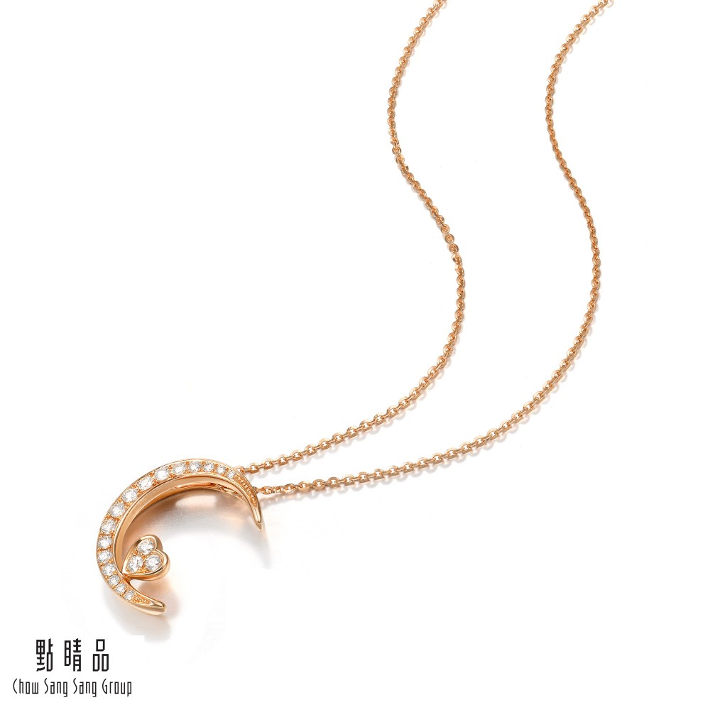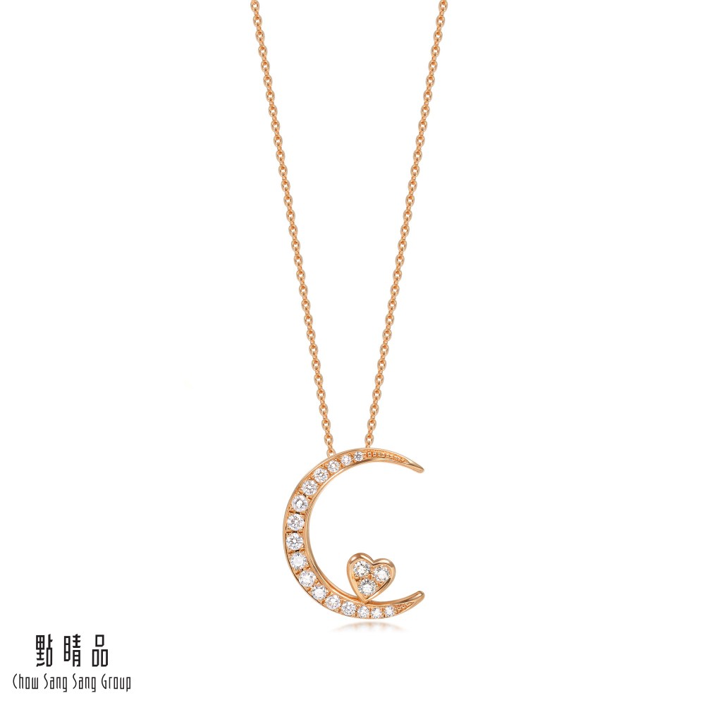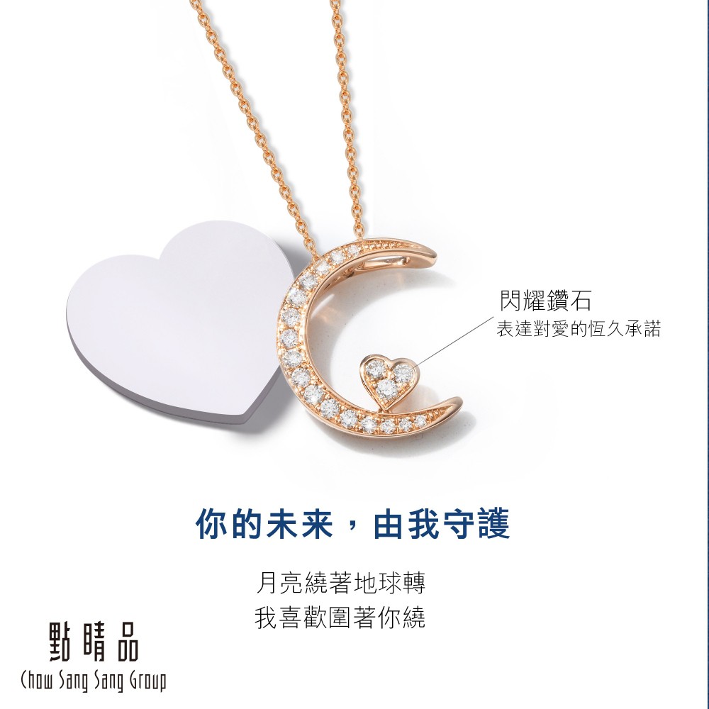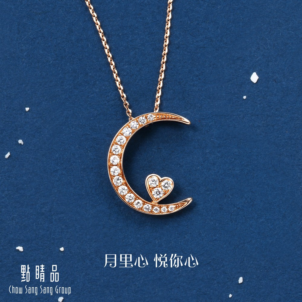 點睛品 愛情密語 月亮代表我的心 18K玫瑰金鑽石項鍊