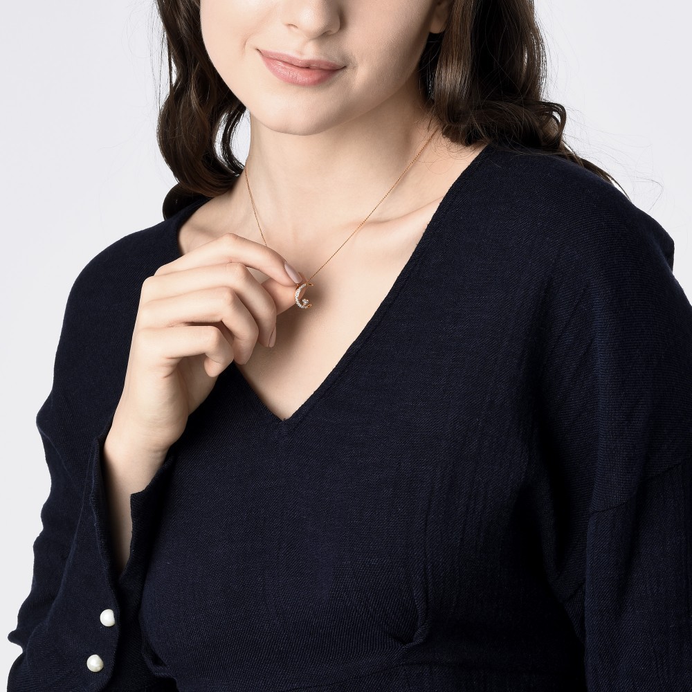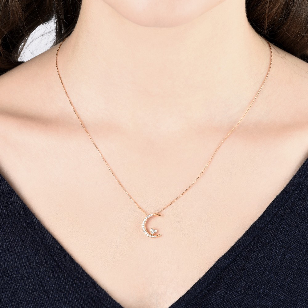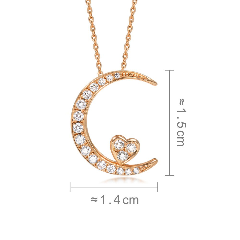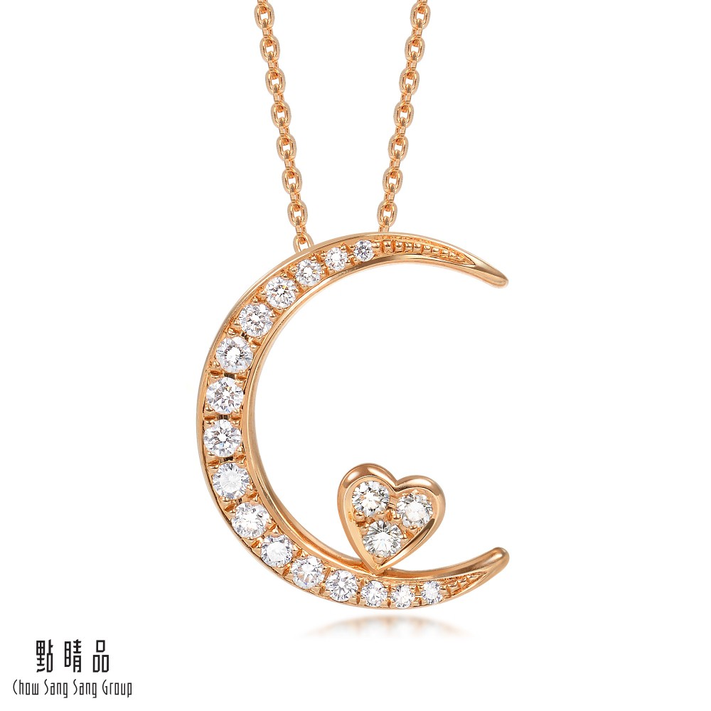 點睛品 愛情密語 月亮代表我的心 18K玫瑰金鑽石項鍊