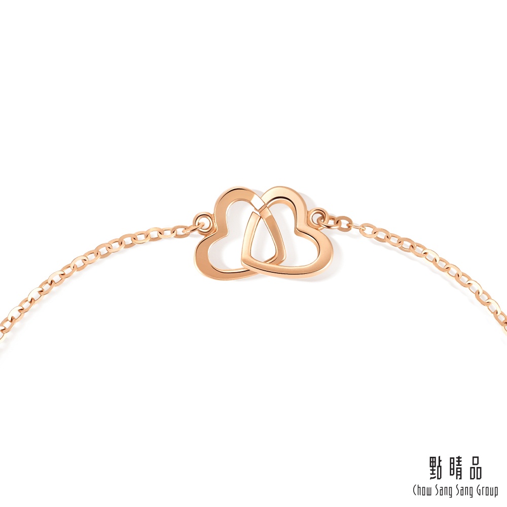點睛品 全18K 心心相扣 18K玫瑰金手鍊