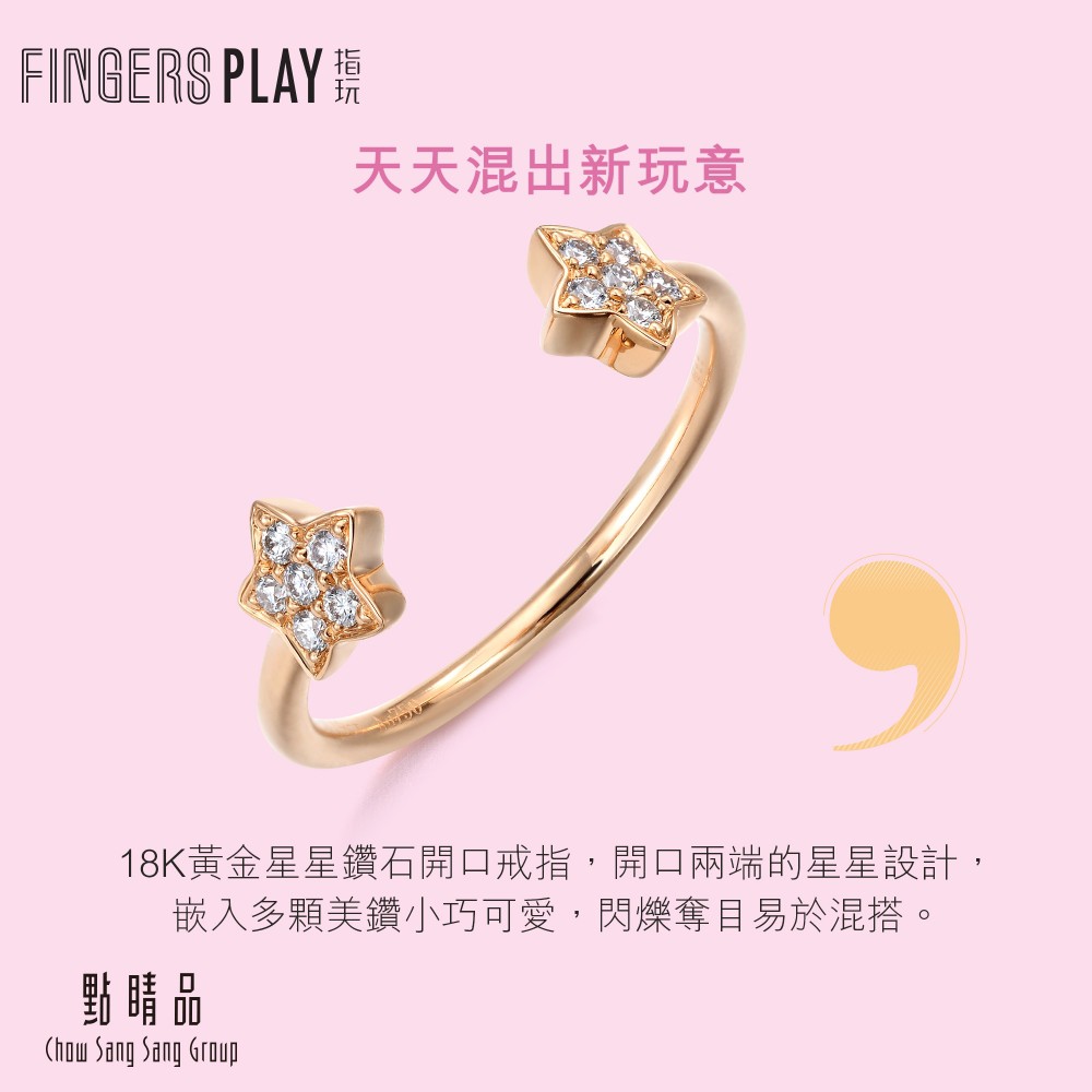 點睛品 Fingers Play 18K玫瑰金閃耀之星開口式鑽石戒指