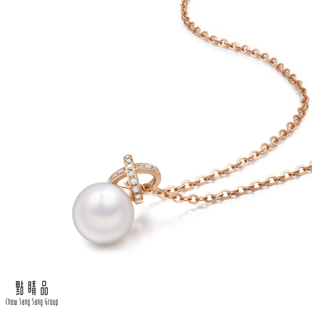 點睛品 La Pelle 日本Akoya珍珠 18K玫瑰金鑽石吊墜