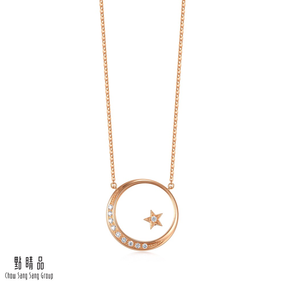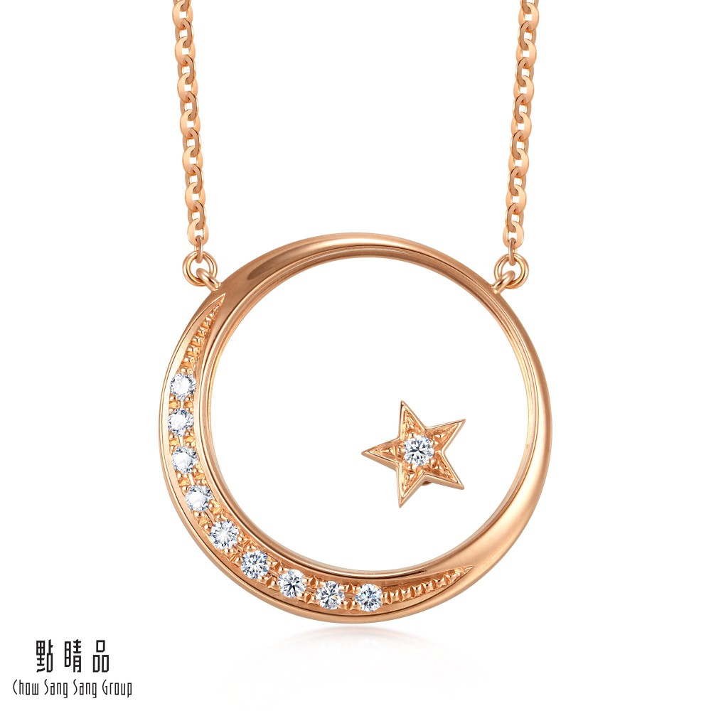 點睛品 愛情密語 星月交輝 18K玫瑰金鑽石項鍊