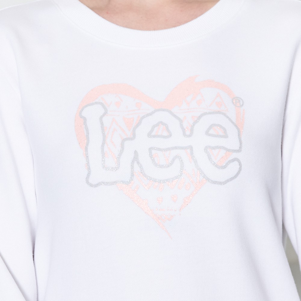 Lee 愛心LOGO長袖T恤 大學T 女 白 Modern LL200319K14