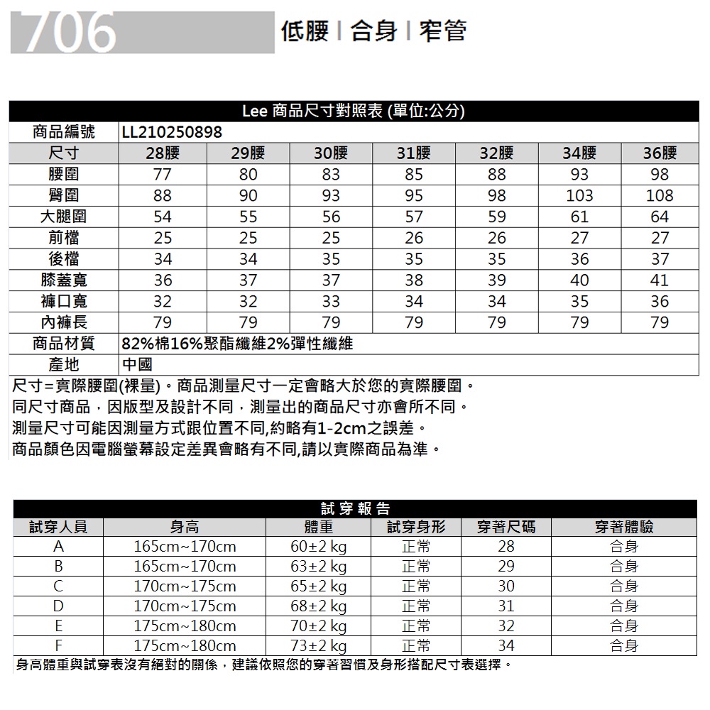 Lee 706 彈性低腰合身窄管牛仔褲 男 Modern LL210250898