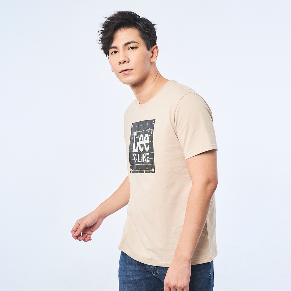 Lee 方框LOGO印花短袖T恤 男 X-LINE 奶茶棕LL22001097W