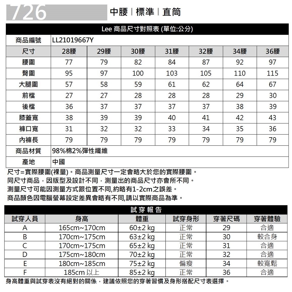 Lee 726 彈性中腰標準直筒牛仔褲 男 Modern LL21019667Y