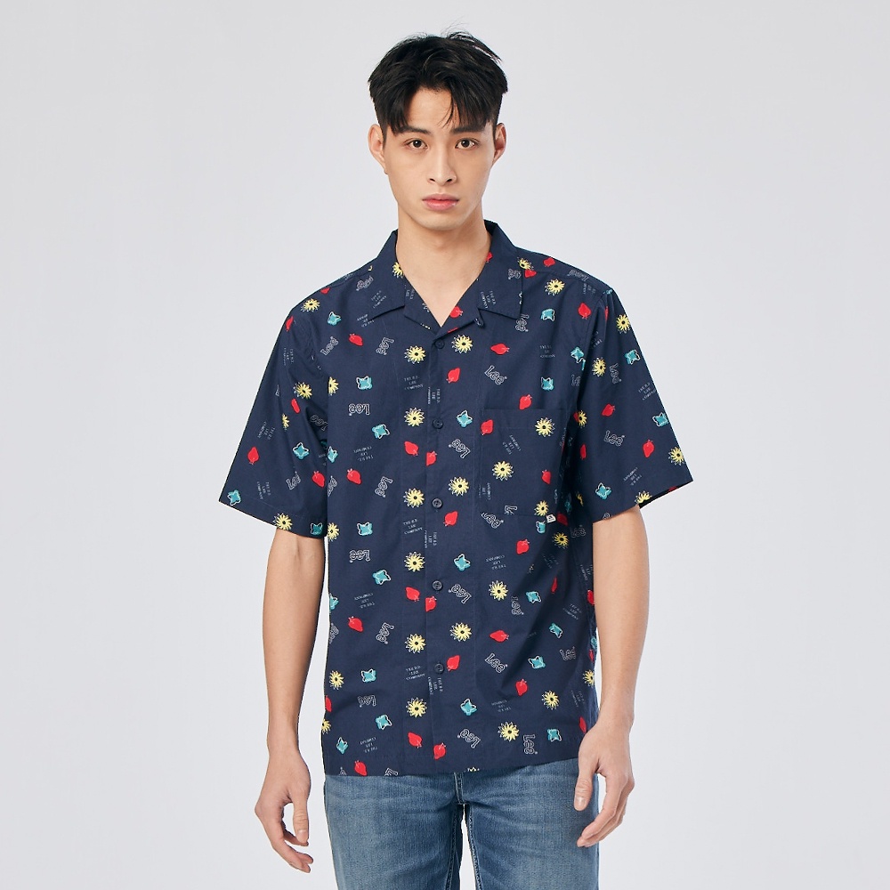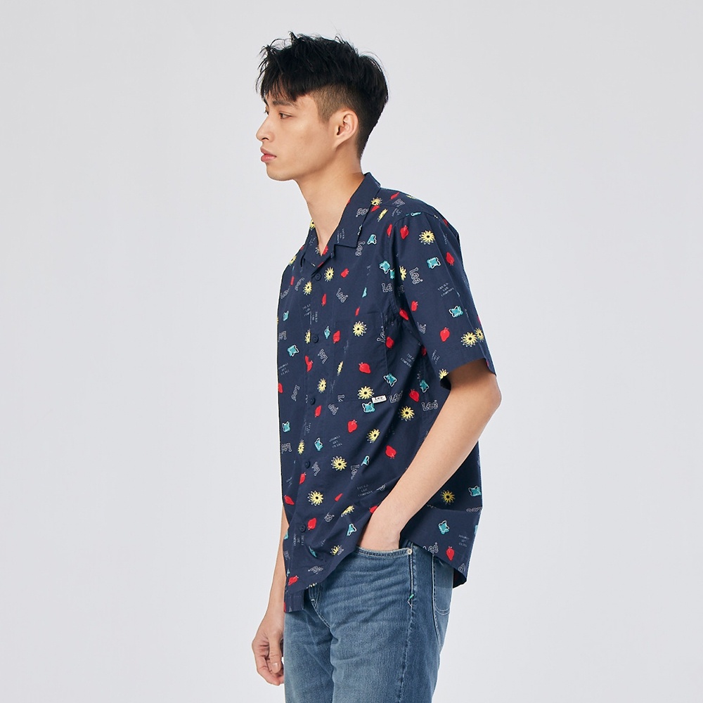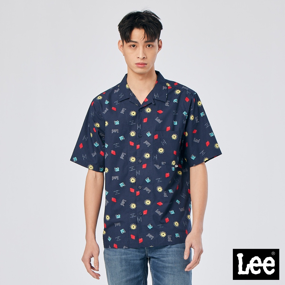 Lee 滿版印花短袖休閒襯衫 男 Modern 深藍LL220170562