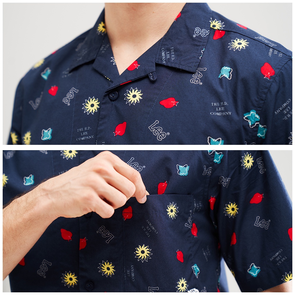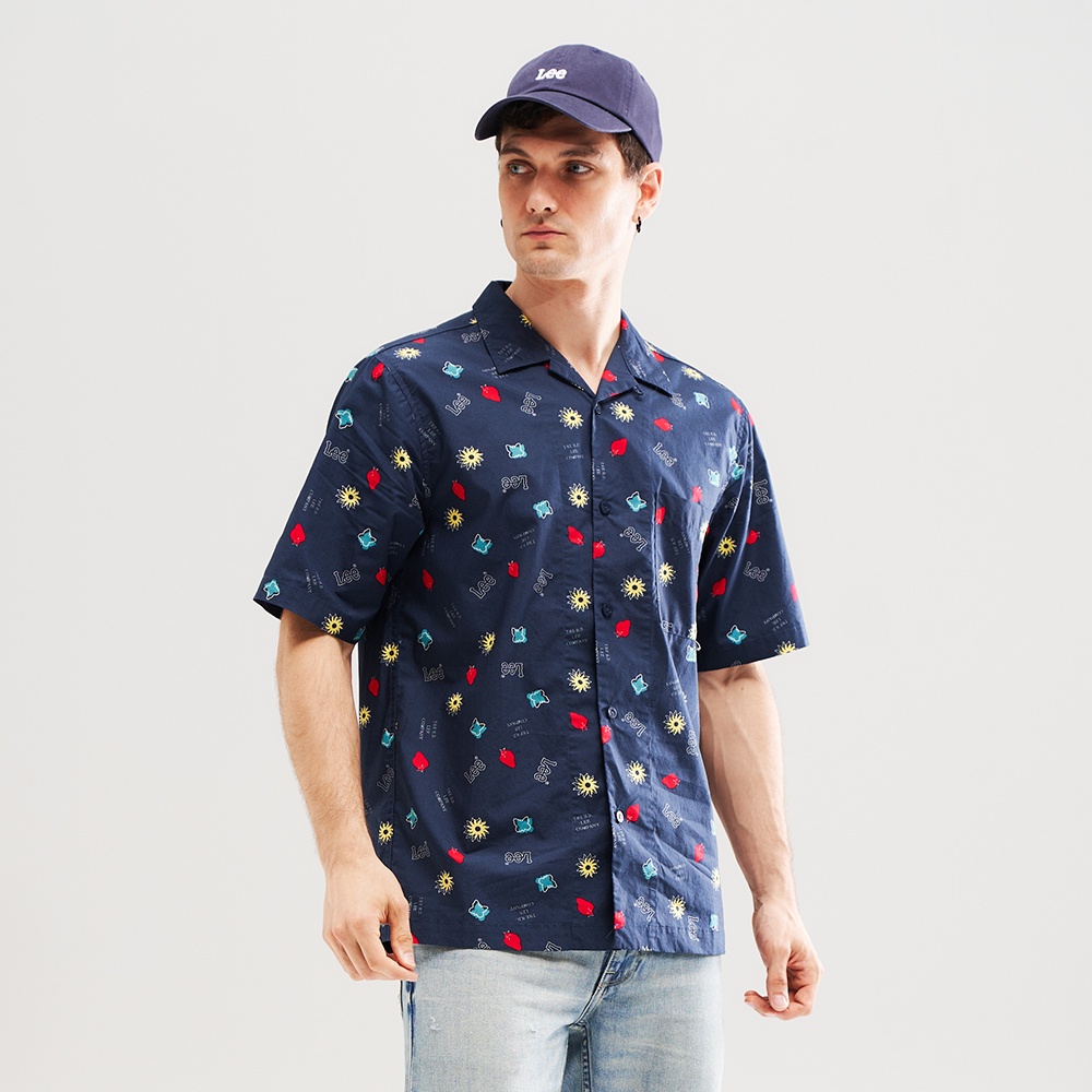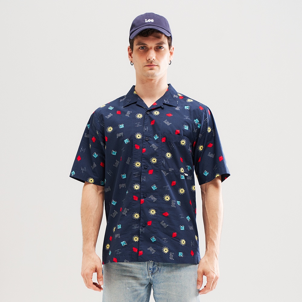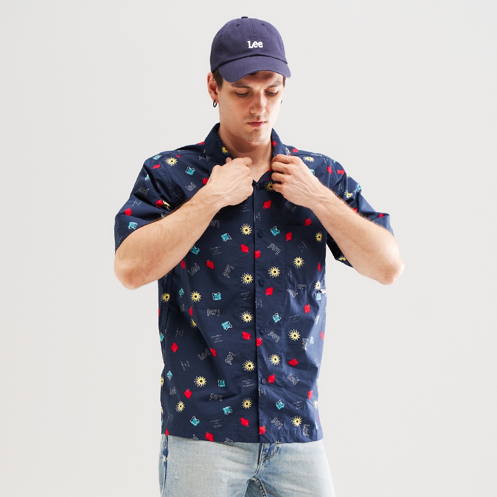 Lee 滿版印花短袖休閒襯衫 男 Modern 深藍LL220170562