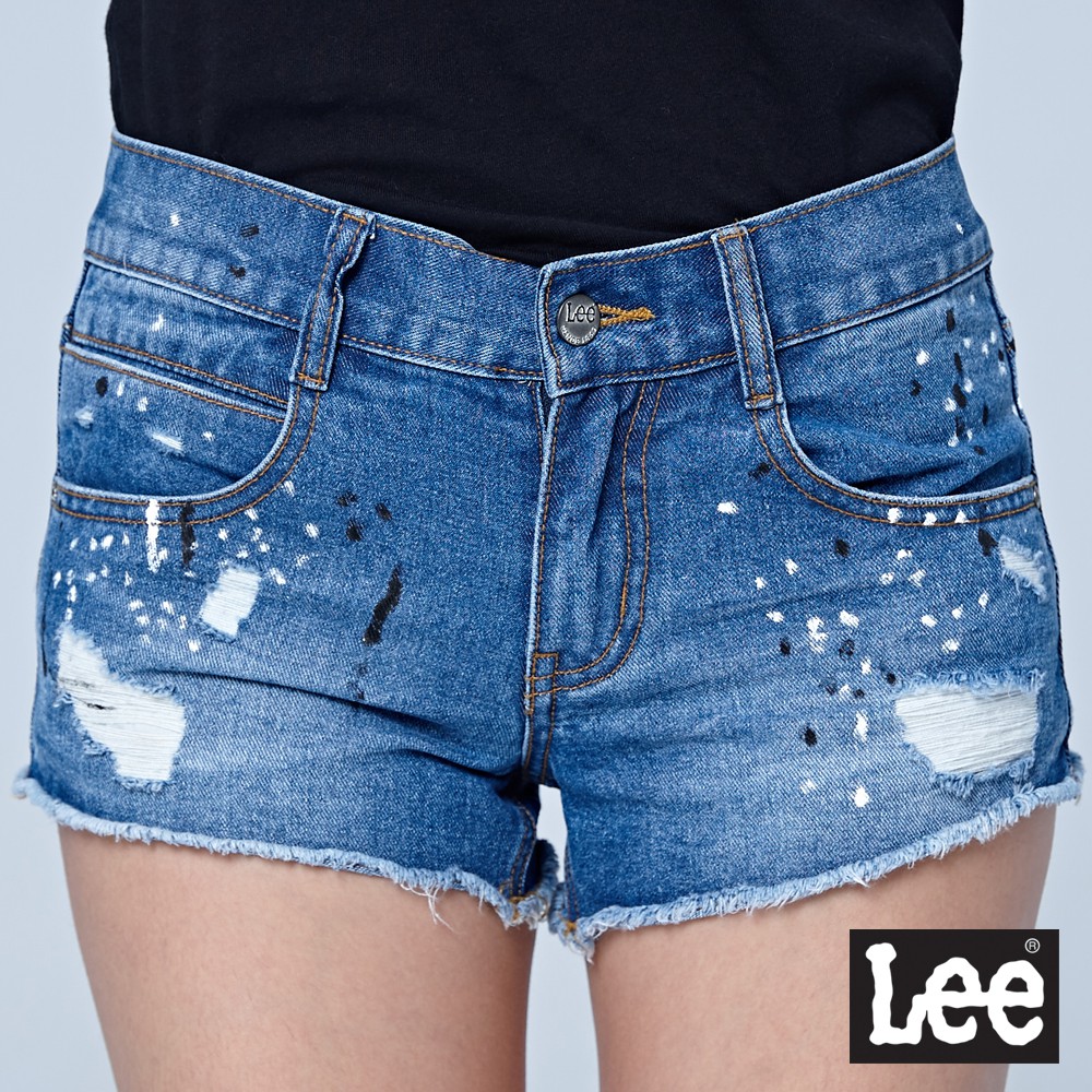 Lee 黑白噴彩激瘦合身牛仔短褲 女 水洗藍 Modern LL180429T06