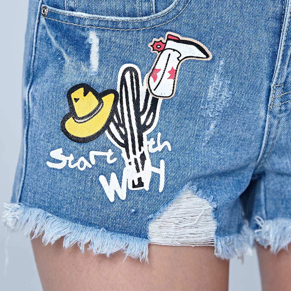Lee 童趣貼印牛仔短褲 女 淺藍 Modern LL180434T09