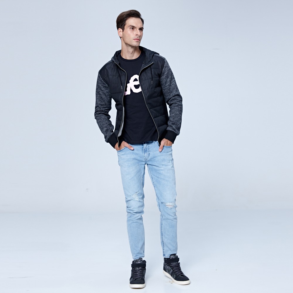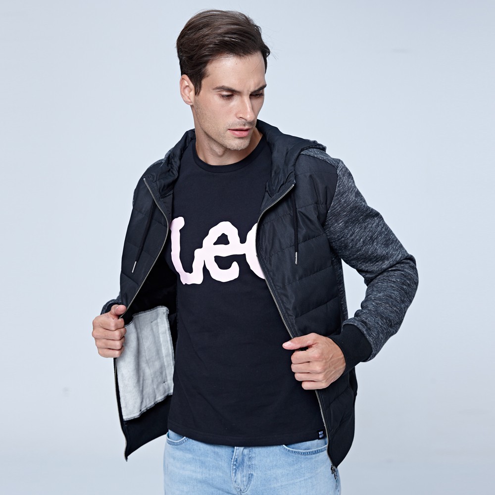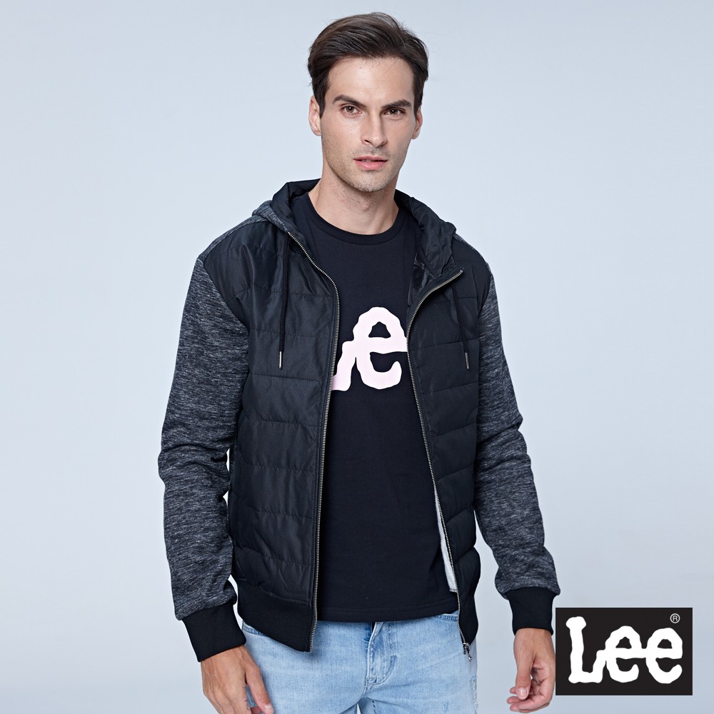 Lee 異材質拼接連帽舖棉外套 男 黑 Modern LL180009089