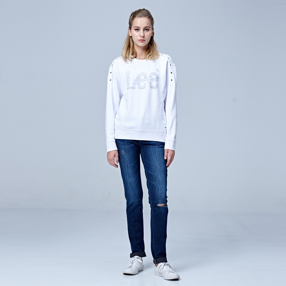 Lee 433 四面彈保暖高腰合身窄管牛仔褲 女 中藍 Modern Magma LL1803089GN
