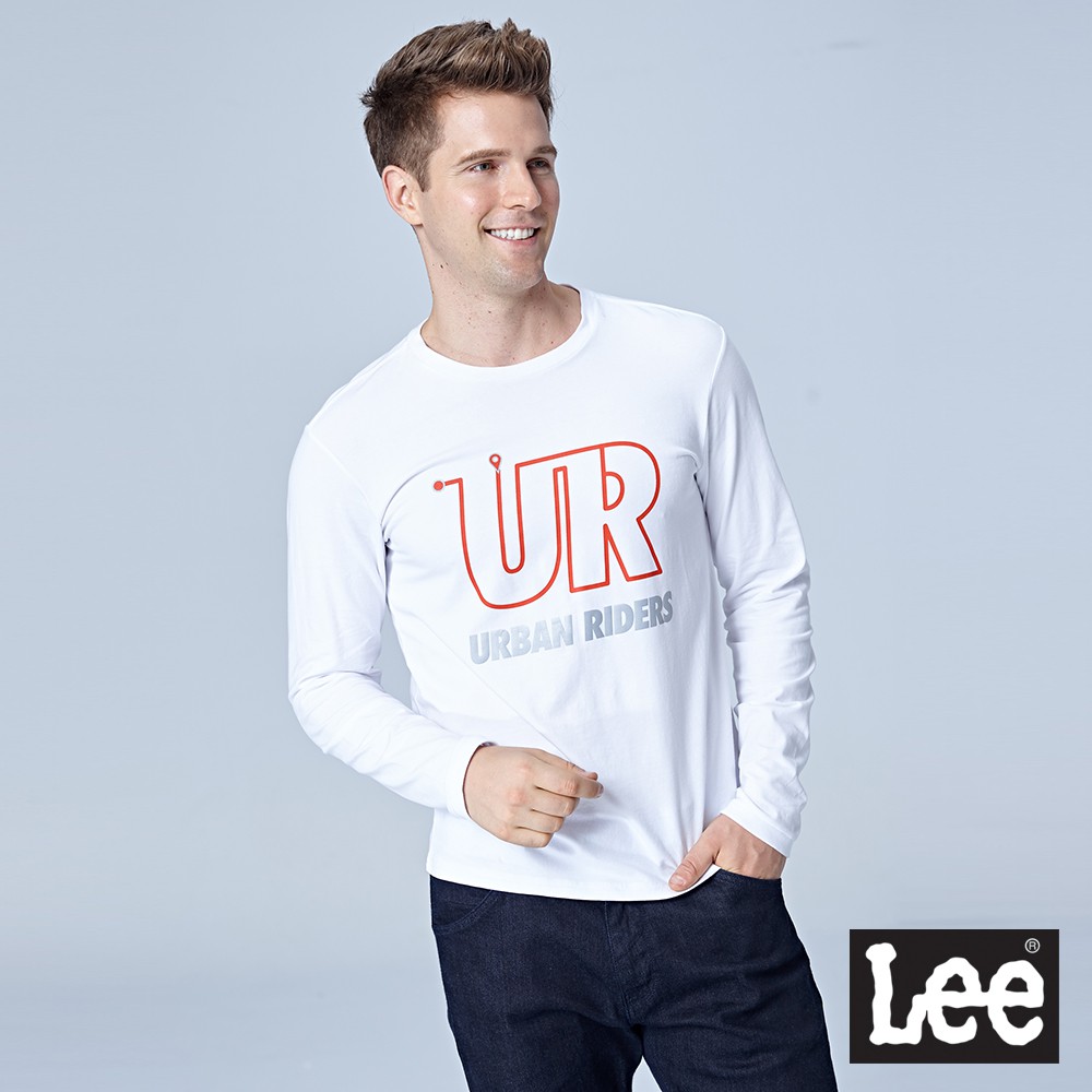 Lee 文字印刷長袖T恤 男 白 Urban Riders LL180339K14