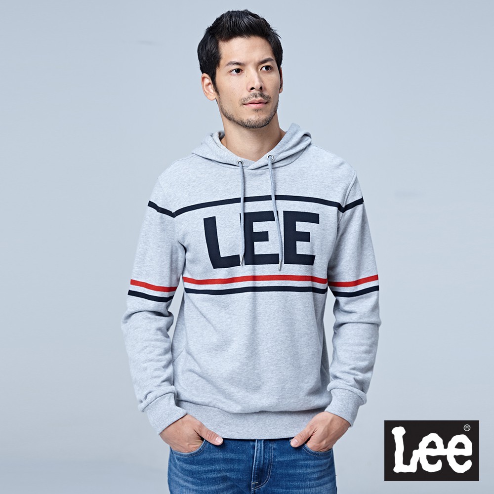 Lee 線條長袖帽T 男 Modern 花灰LL1803629CG