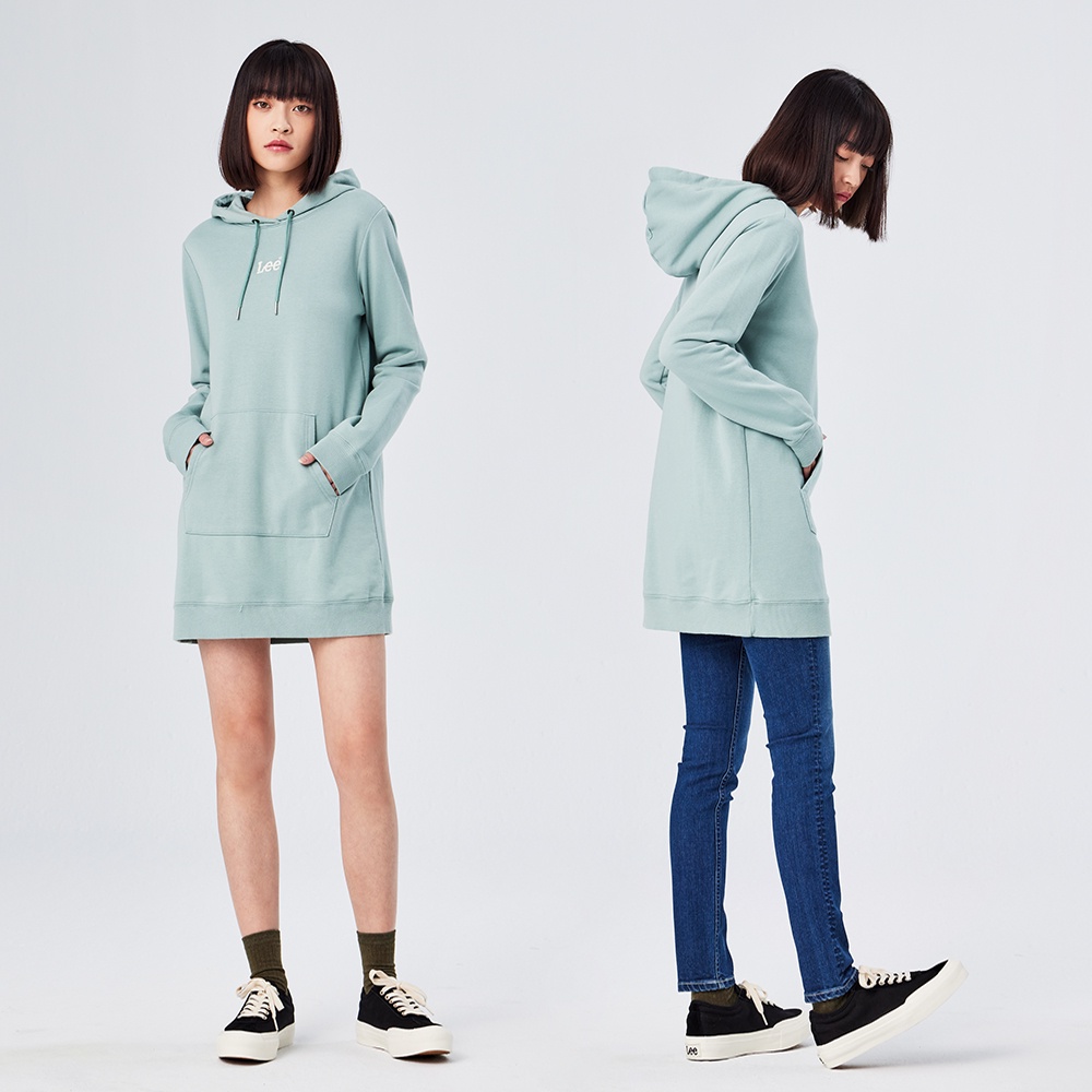 Lee 小LOGO下身失蹤長版帽T 女 LL210385 湖水綠009 奶茶棕97W 夢想粉8UT