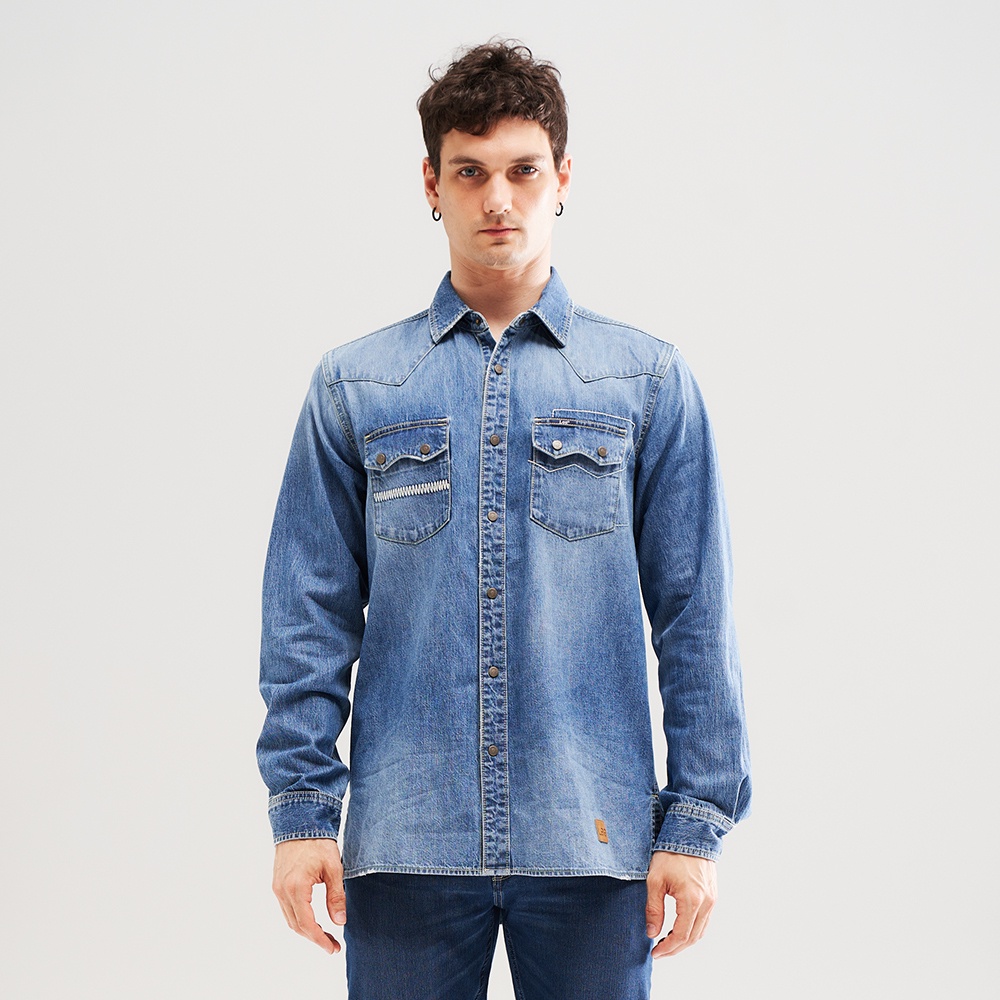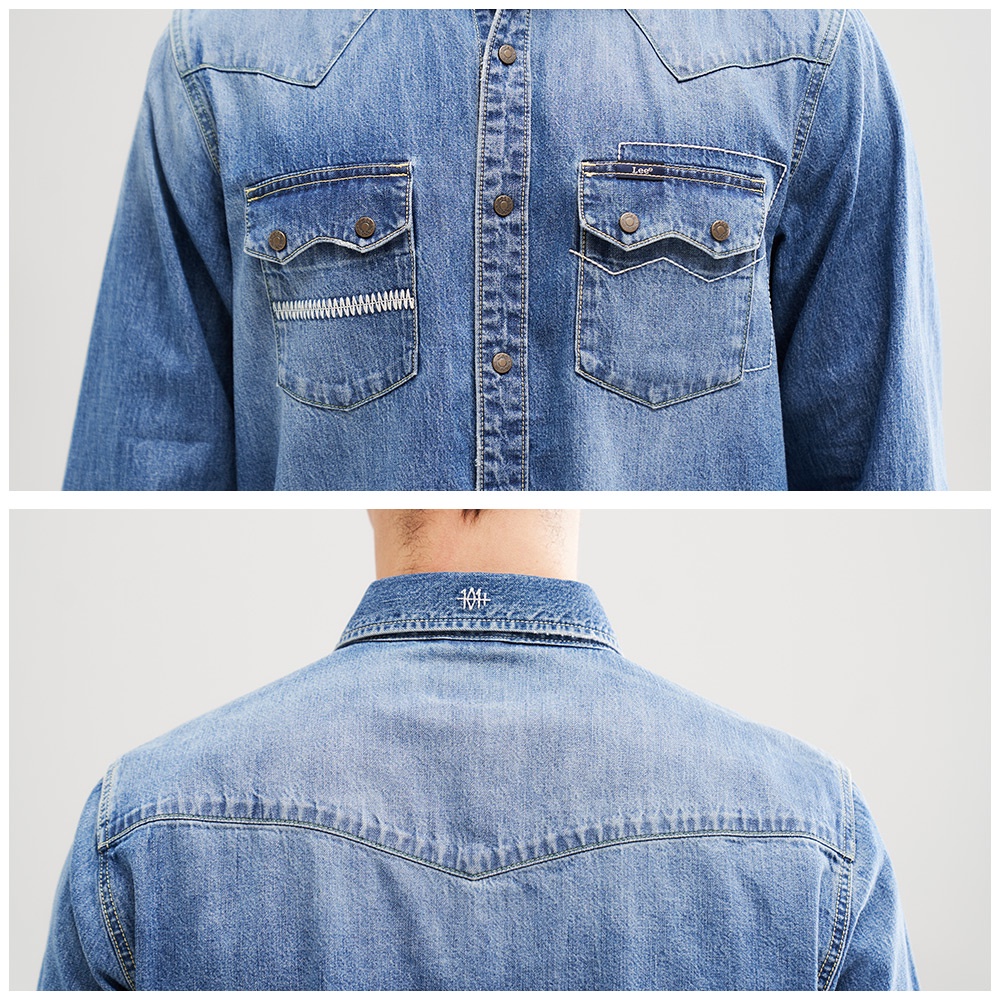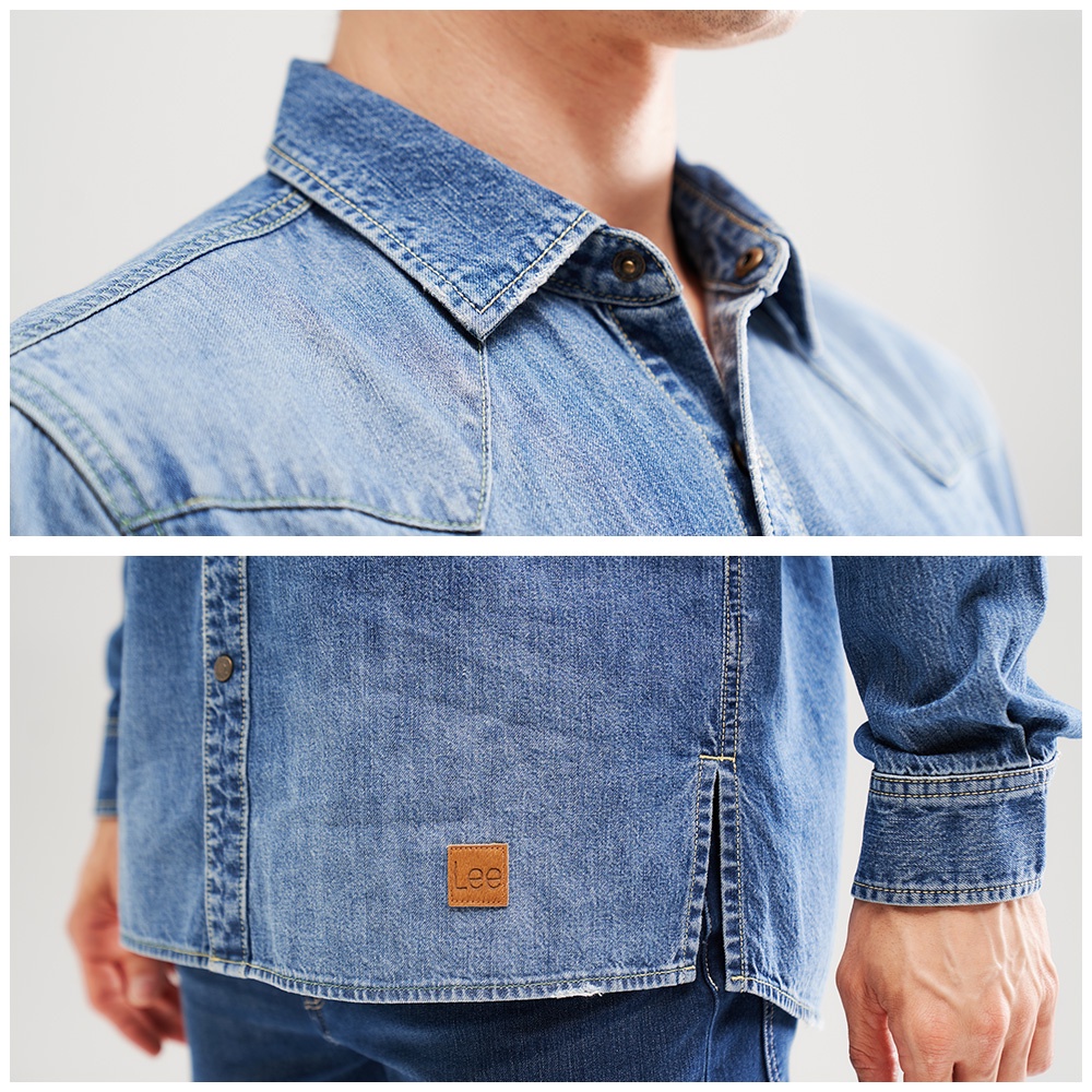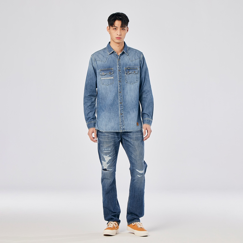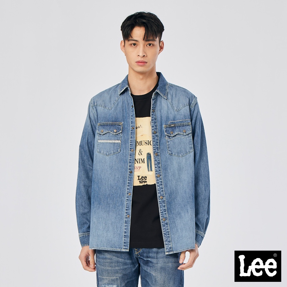 Lee 造型雙口袋長袖牛仔襯衫 男 101+ 淺色洗水LL220056507
